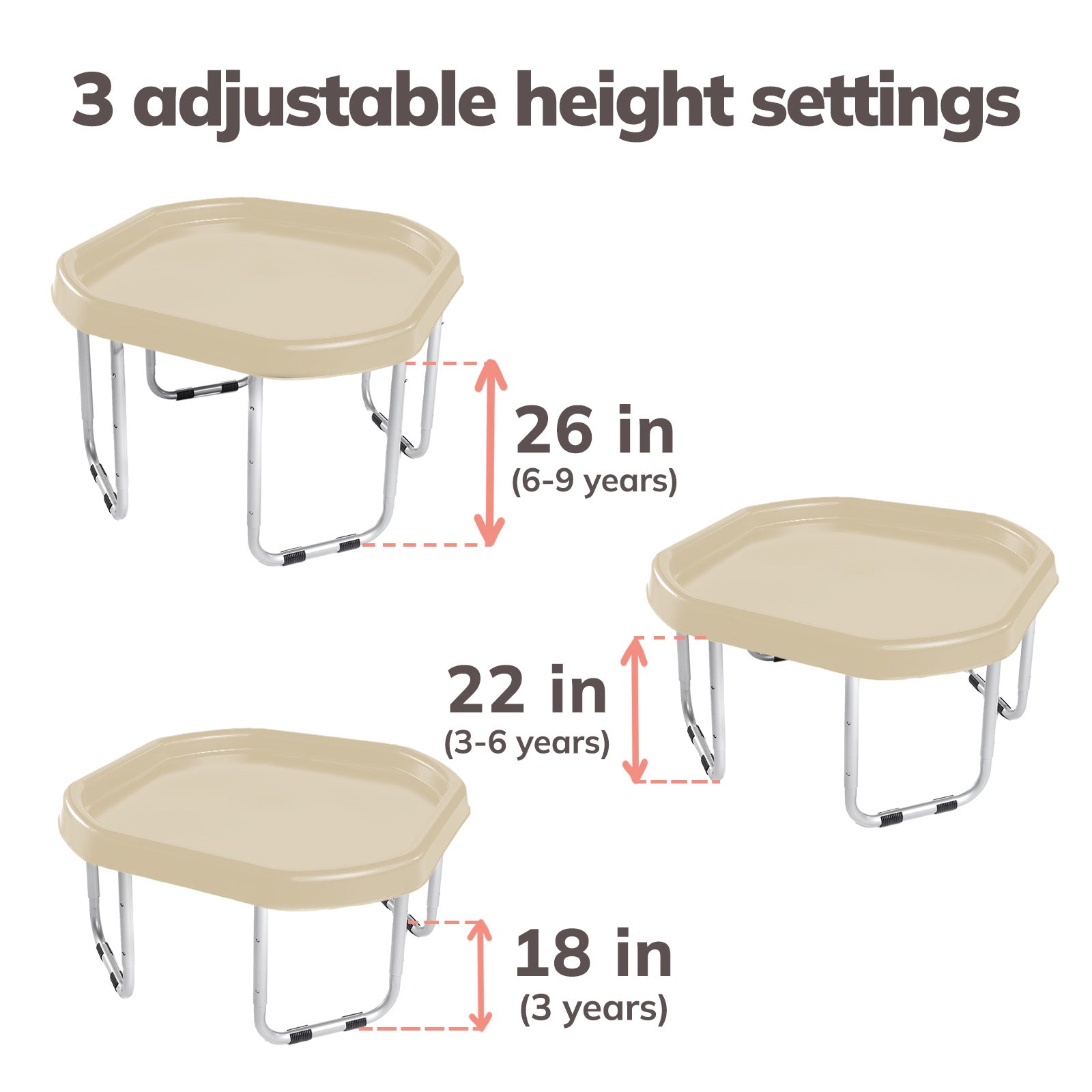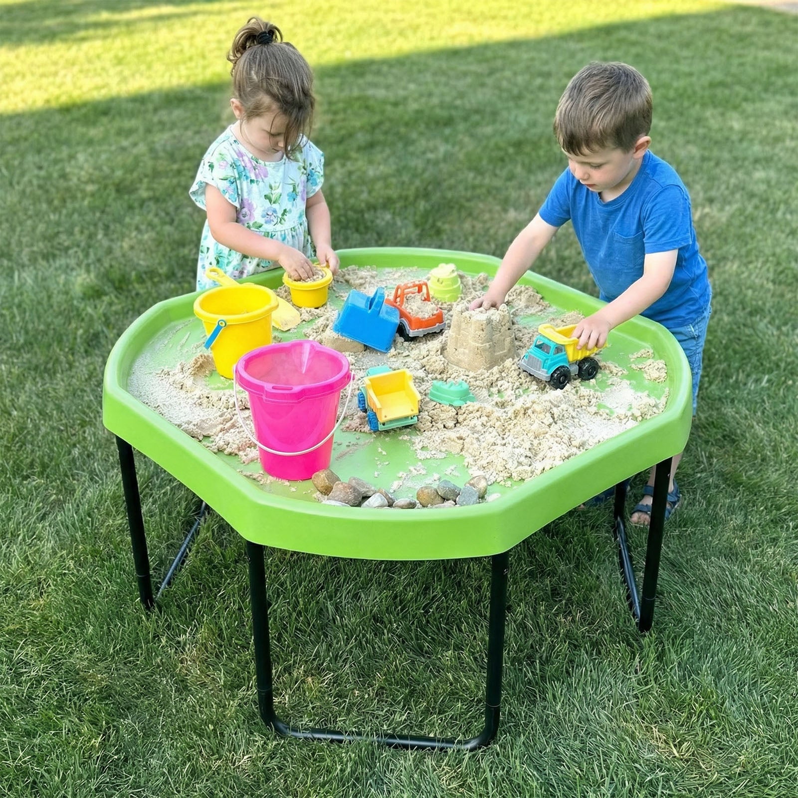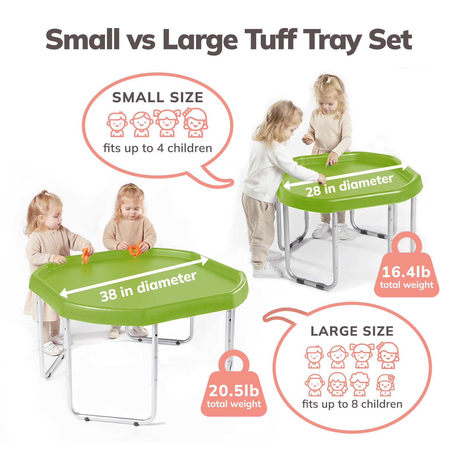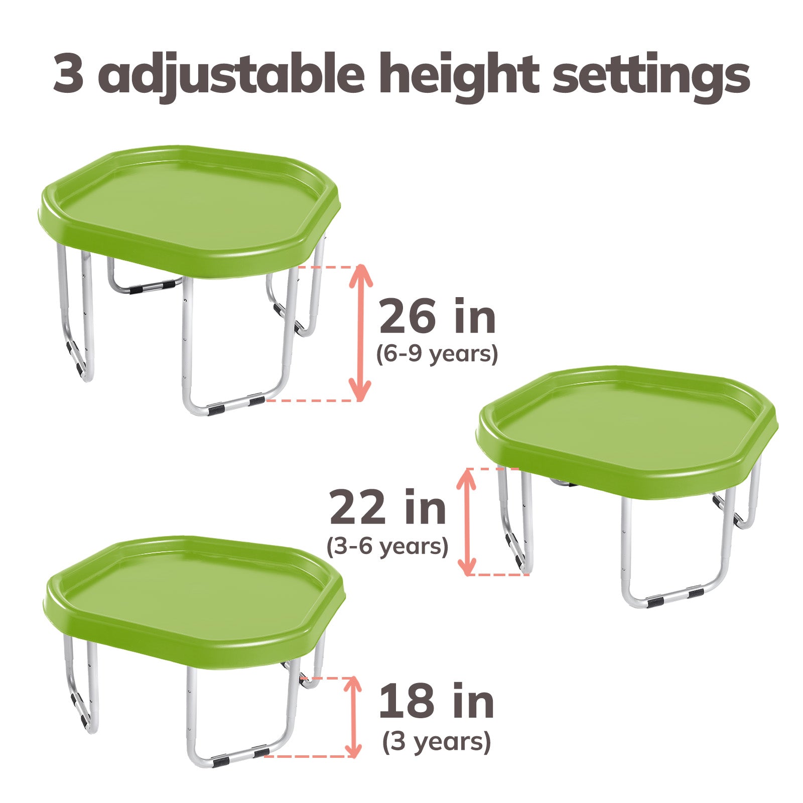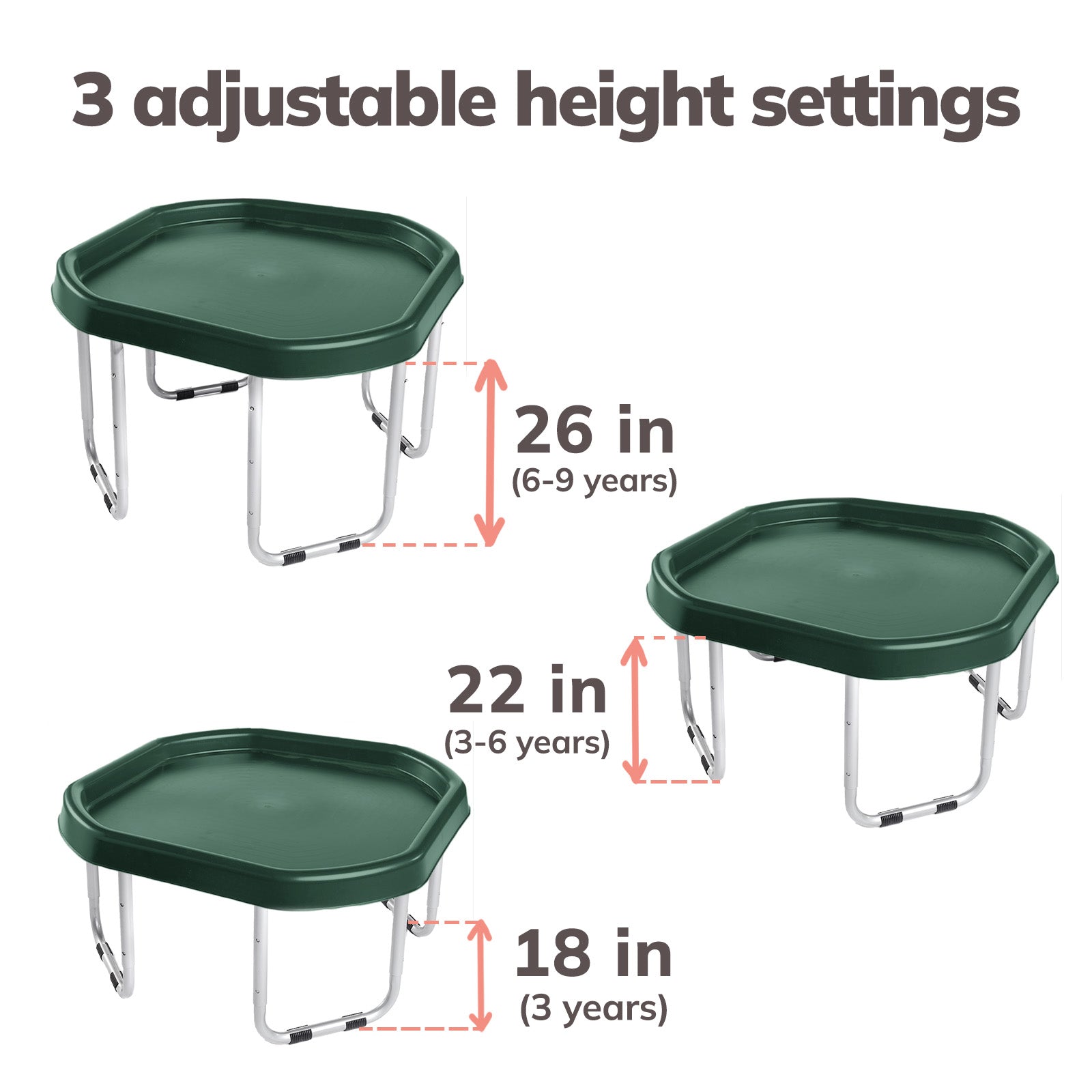 The Tuff Tray Set includes the tray and 3-position adjustable height stand. For added fun, accessories can be purchased separately here.