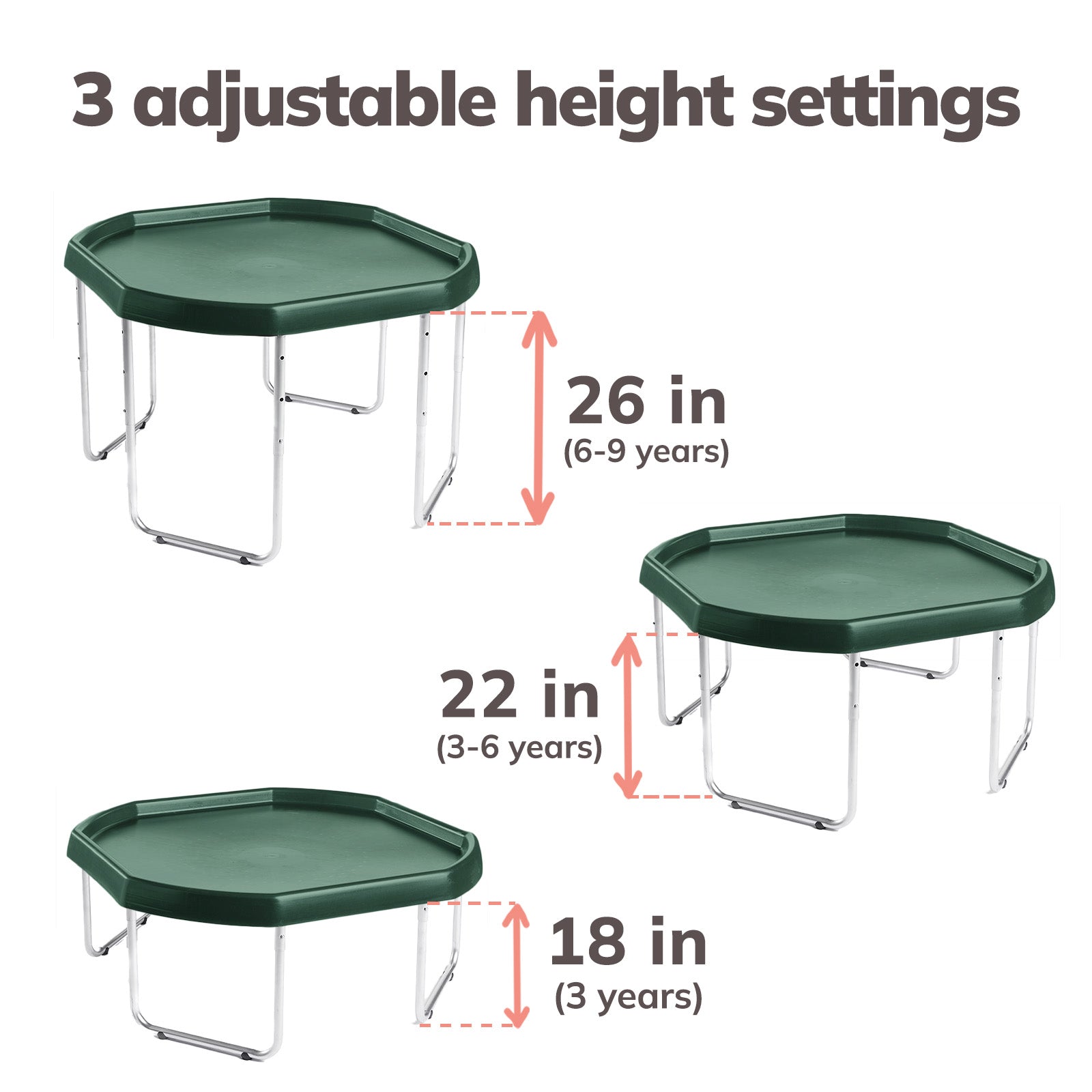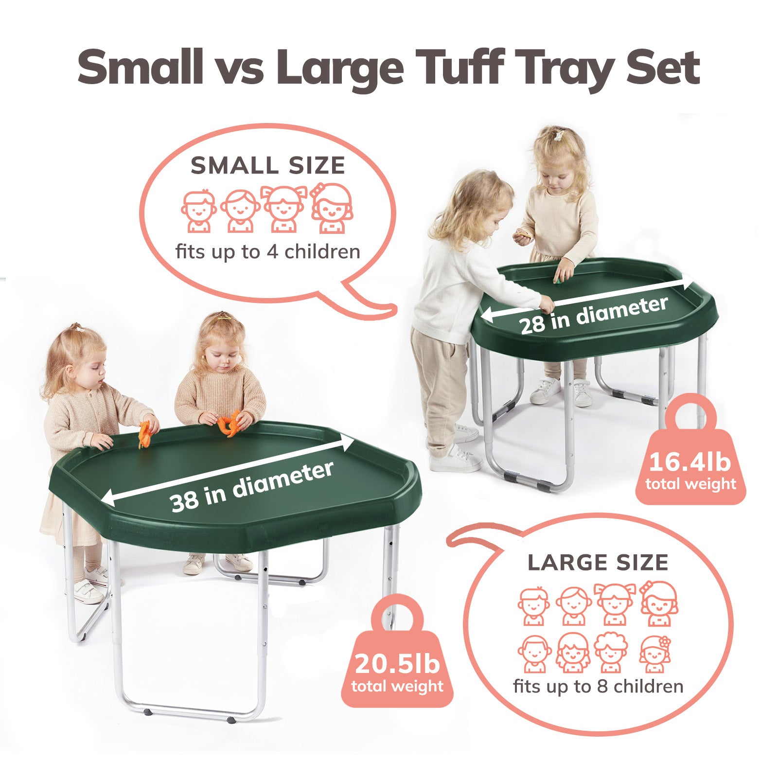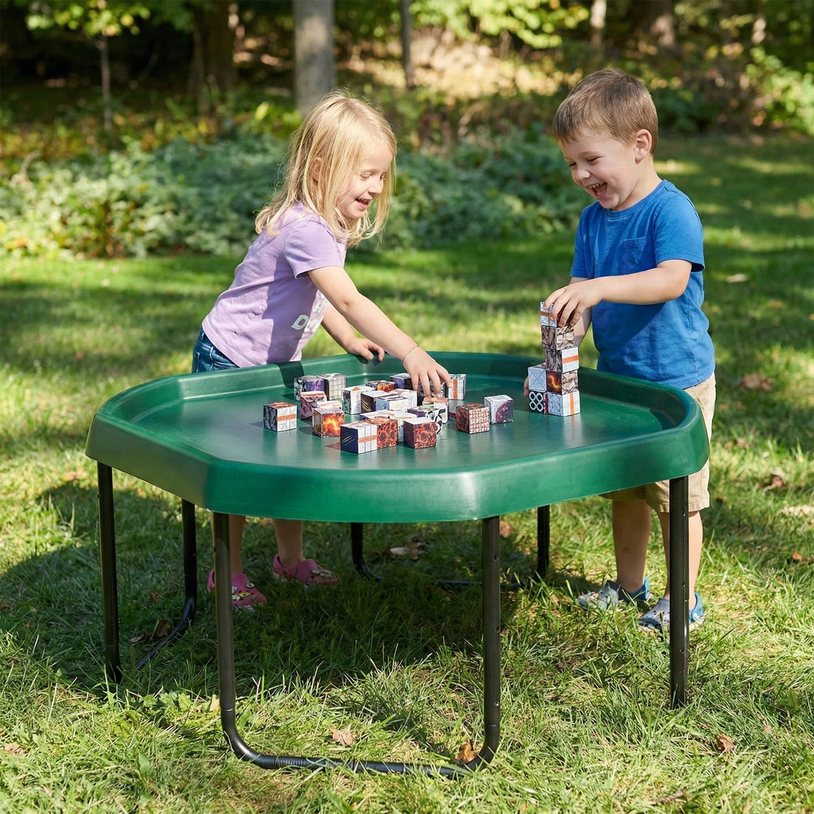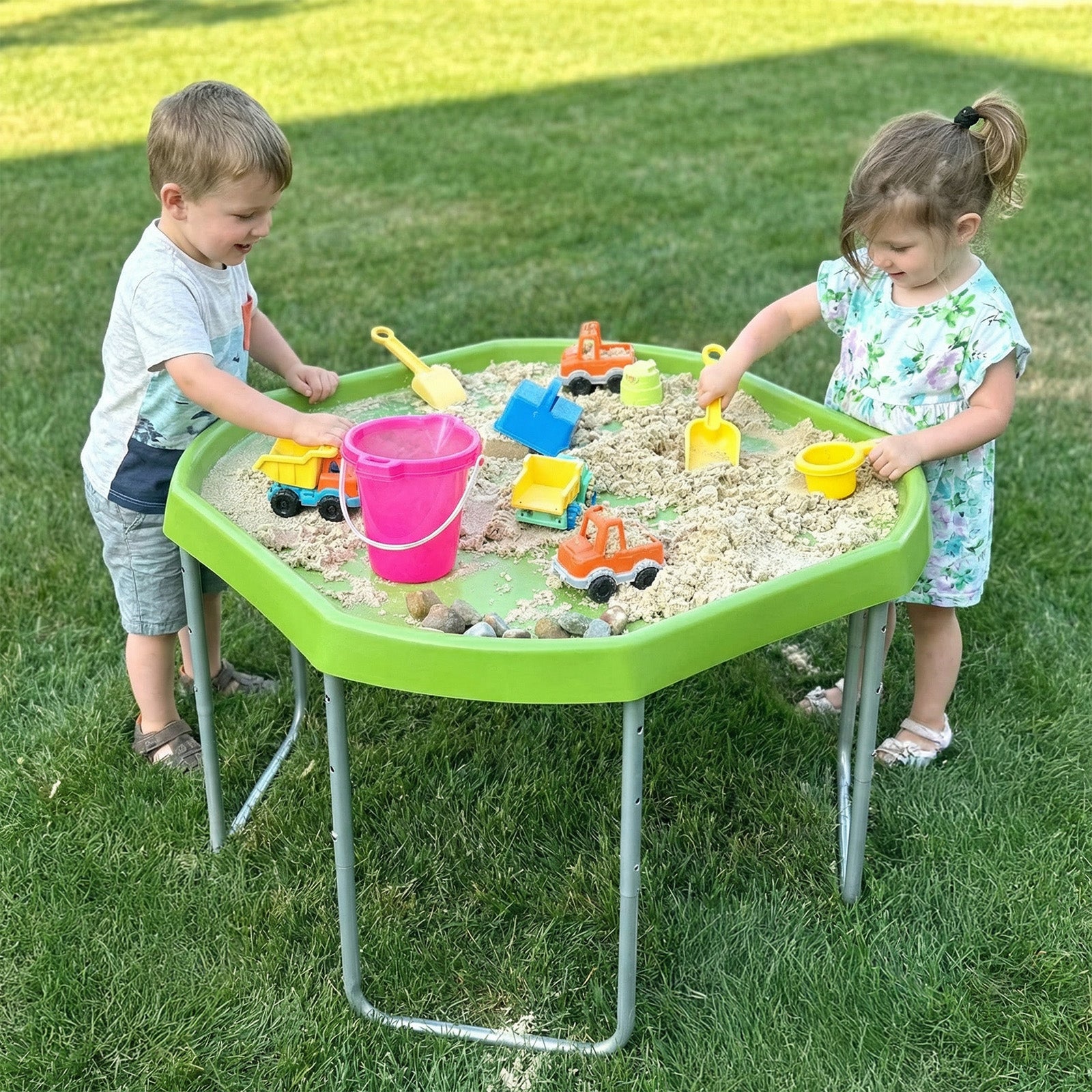 The Tuff Tray Set includes the tray and 3-position adjustable height stand. For added fun, accessories can be purchased separately here.