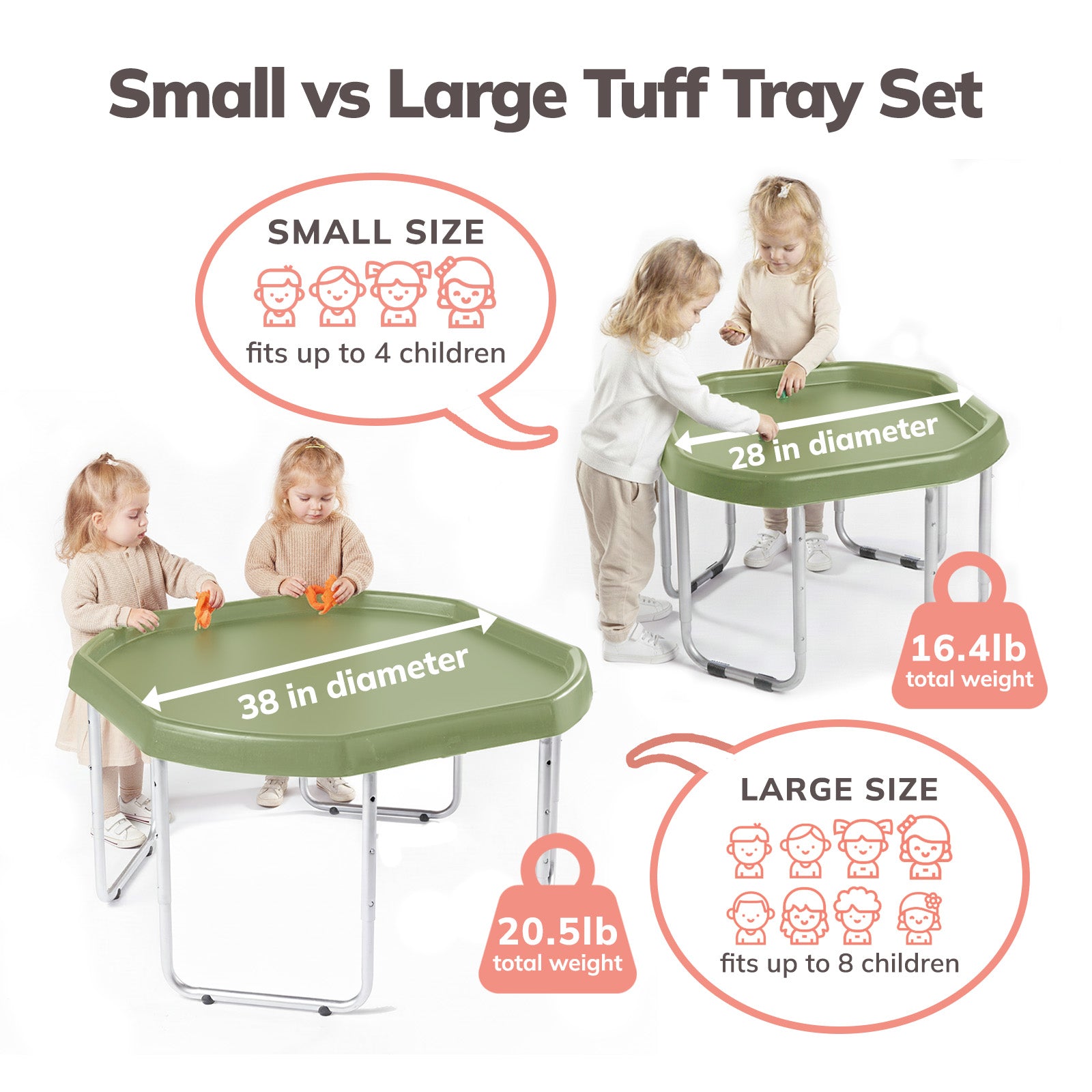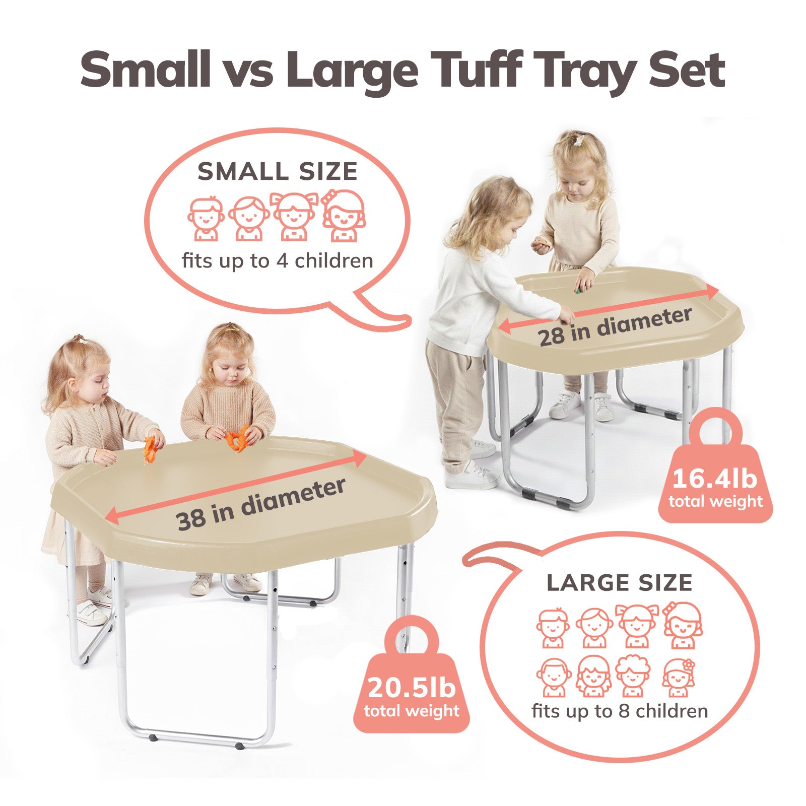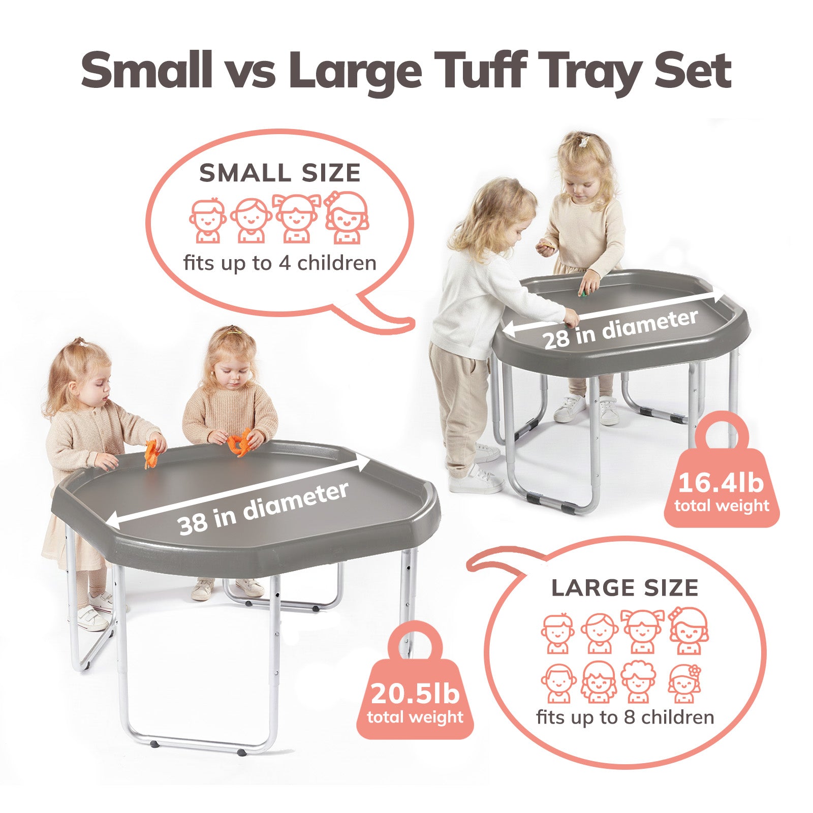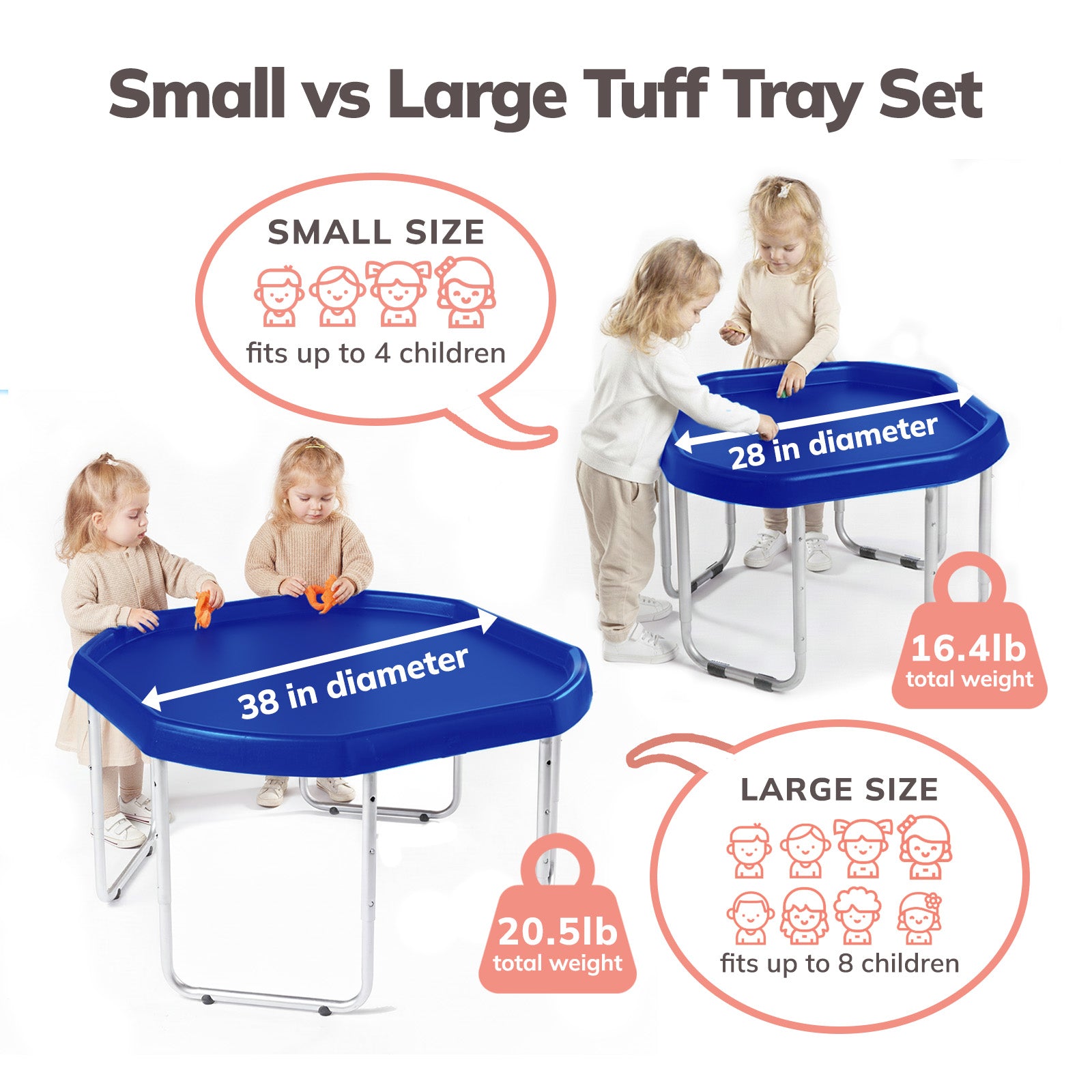 The Tuff Tray is designed for children ages 12 months to 9+ years old.