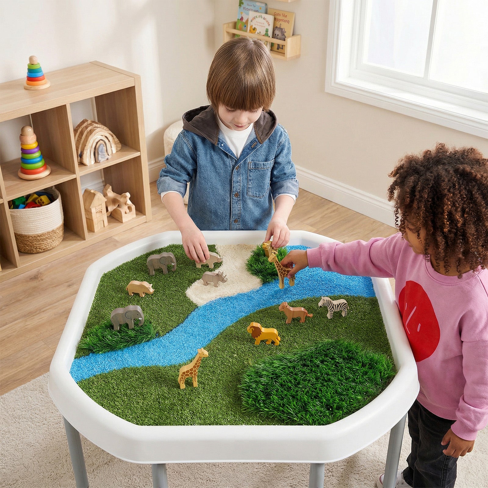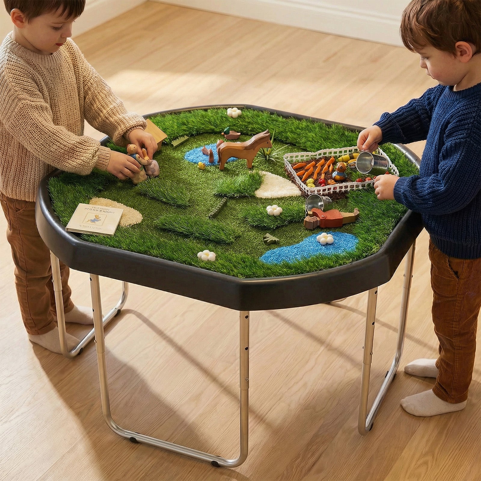 The Tuff Tray is designed for children ages 12 months to 9+ years old.