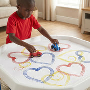 The Tuff Tray Set includes the tray and 3-position adjustable height stand. For added fun, accessories can be purchased separately here.